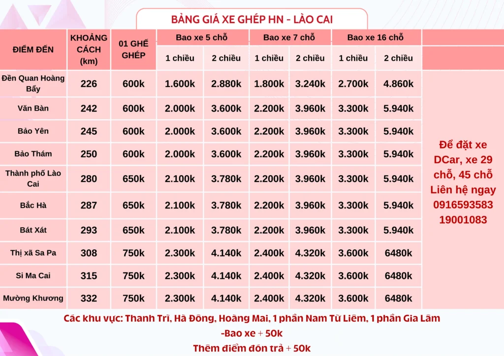 1. Xe ghép Hà Nội – Lào Cai giá bao nhiêu?